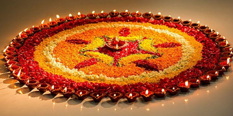 Let’s use natural colours & ingredients like rice powder, cloves/ cinnamon(brown), turmeric or haldi (yellow), etc. for decoration. Simple Flowers are the best option for ‘go green diwali’ as they are safe for the environment and bio-degradable.